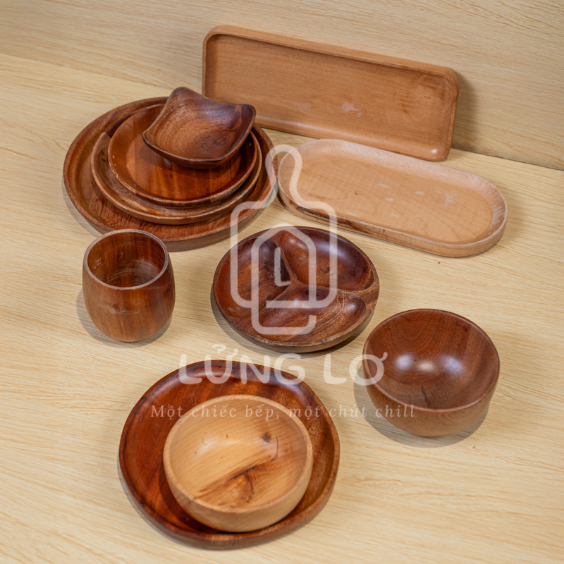Đĩa, muỗng, ly tách, khay gỗ